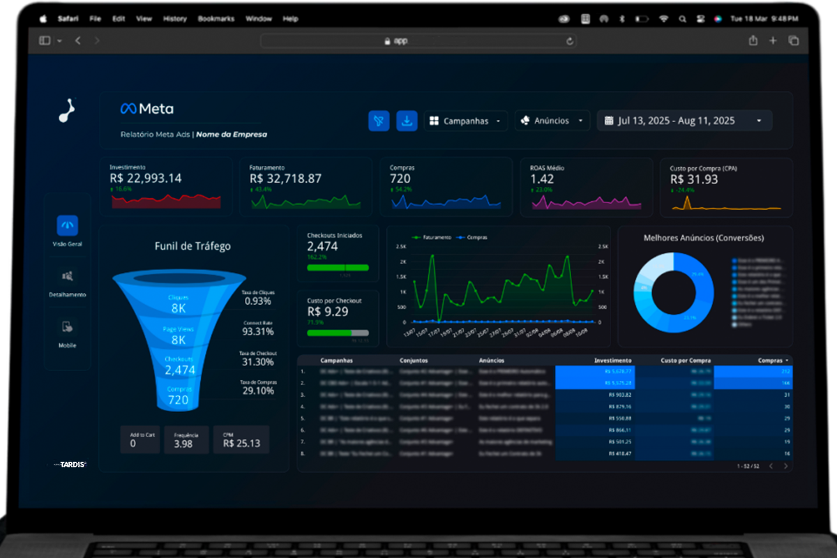 Na Agência Tardis, a gestão de tráfego pago começa com entendimento do negócio, do público e do objetivo. Criamos campanhas focadas em conversão e acompanhamos tudo através de dashboards claros.